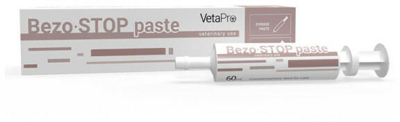 Takarmánykiegészítő gél formátumban macskáknak . A Bezo -Stop paszta arra alkalmas, hogy eltávolítsa a szőrcsomókat és megakadályozza a szőrcsomó képződését macskákban. A Bezo-Stop olajos alapú paszta. A gyomrot és az emésztő-/gasztrointesztinális rendszert olajos réteggel vonja be, ahol az idegen testek elzáródást okozhatnak. Mivel a Bezo-Stop tulajdonságai hozzájá