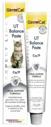 A GimCat UT Balance paszta egy kiegészítő eledel macskáknak, a húgyutak védelmére. Jellemzők : - A macskák eredetük miatt természetes víztakarékosak. Koncentrálják a vizeletüket, hogy minimalizálják a kiválasztott vízmennyiséget, ami húgykövek felhalmozódását okozhatja. A paszta gondosan válogatott összetevőket tartalmaz, ami a húgyutak rendellenességeinek szabályoz