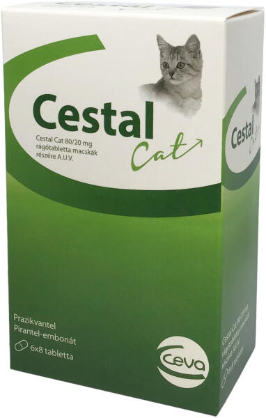 A Cestal Cat rágótabletta macskáknak egy széles spektrumú féregtelenítő macskák valamennyi jelentős bélféreg-fertőzöttségének kezelésére. Cestal Cat 80/20 mg rágótabletta macskák részére A. U. V. JELLEMZŐK: - Hatékony a Magyarországon leggyakoribb bélférgek ellen (orsóférgesség, kampósférgesség, galandférgesség) - Egyszeri kezelés elegendő a szokásos féregte