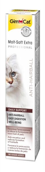 GimCat Malt-Soft Extra Professional egy magas rosttartalmú, szőroldó paszta macskák részére. Jellemzők: - A GimCat Malt-Soft Extra Professional paszta innovatív formulájának köszönhetően segít megelőzni a szőrlabdák kialakulását. - A malátát, lenolajat, cellulózt és béta-glükánt tartalmazó készítmény elősegíti a lenyelt szőr természetes úton történő távozás