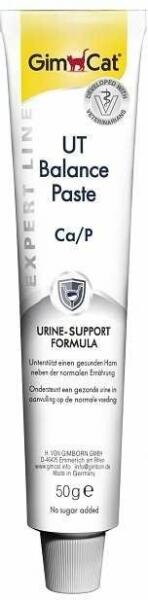 GimCat Urinary PasztaA GimCat Urinary Paszta egy kiegészítő eledel macskáknak, a húgyutak védelmére. Elérhető kiszerelés: 50 gJellemzők:A macskák eredetük miatt természetes víztakarékosak. Koncentrálják a vizeletüket, hogyminimalizálják a kiválasztott vízmennyiséget, ami húgykövek felhalmozódását okozhatja. A pasztagondosan válogatott összetevőket tartalmaz, ami a h
