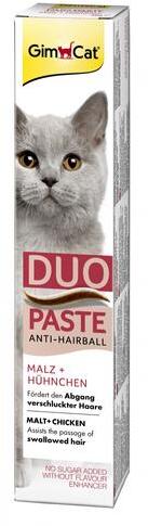 Az Anti-Hairball Duo Paszta egy jótékony hatású jutalomeledel macskája számára, ami segíti a szőrlabda feloldást. Jellemzők : Szőrlabdák akkor alakulnak ki, mikor a cicák mosdanak. Főképp hosszú szőrű és házi cicák esetén jellemző szőrlabda képződés. A cica mosakodás közben lenyalja és lenyeli a laza szőrszálakat. Ezek a szőrszálak állnak össze és formálnak s