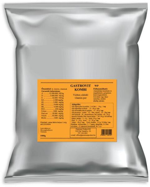 A Gastrovit Kombi egy magas vitamintartalmú, takarmányban és ivóvízben is oldódó kiegészítő por minden állatfaj részére. Alkalmazható vitaminhiány kezelésére és megelőzésére, valamint gyógykezelések kiegészítésére. A termék vény nélkül kapható, kiszerelés: 1000 g.