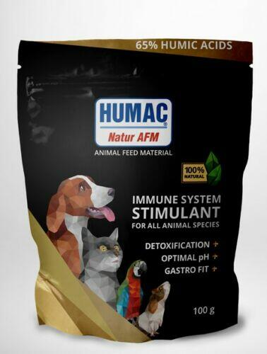 A HUMAC Natur AFM 100 %-ban természetes kiegészítő táplálék, allergiás tünetek enyhítésére, és az immunrendszer erősítésére. Hatását a bélrendszeren keresztül fejti ki, a nap eleséghez kis mennyiségben adagolva. Magas huminsav tartalmú kiegészítő táplálék házi kedvencek részére, aktivált Leonardit tartalommal, mely természetes, magas biológiai hatékonyságú ö