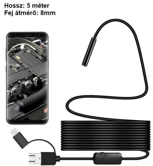 Termék részletekEndoszkóp kamera 8 mm (10 méter) WiFi-s, (iOS, Android, Windows), IP67 (kemény)Az endoszkóp kamera nagy segítség lehet a nehezen hozzáférhető területek feltárásában. Ipari és otthoni használatra egyaránt alkalmas (például: repedések, szűk helyek, dugulások, klímaberendezések vagy gépjárművek bontás nélküli hibafeltárására. Termékparaméterek:Kamera fej átmérője: