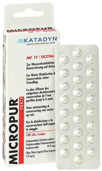 A Katadyn Micropur Forte MF1/100T vízfertőtlenítő tabletták alkalmasak utazásra, kirándulásra vagy kikapcsolódásra. Egzotikus országokba való utazáskor vagy szakmai expedíciók alkalmával is használatos. A készítmény különösen alkalmas fejletlen gazdaságú régiókba és szubtrópusi területekre történő utazáshoz és trópusi övezetekre. A Micropur Forte az aktív kló