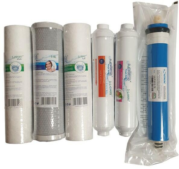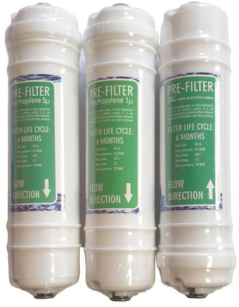 Supreme 6 lépcsős pumpa nélküli, és pumpás készülékek negyedik féléves szűrőcsomagja A szűrőcsomag tartalma, a készülékben áramló víz irányának sorrendjében: 1. 5 Mikronos PP előszűrő henger /Első függőleges szűrőház/ 2. Aktív szénszűrő tömb (CTO) /Középső függőleges szűrőház/ 3. 1 Mikronos PP előszűrő henger /Harmadik függőleges szűrőház/ 4. O
