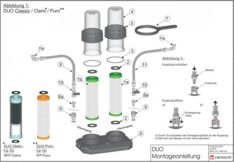 terület A párhuzamosan csatlakoztatott két patron 2-kazetta alulszámláló egysége a szelepszelep és a meglévő szelep között helyezkedik el A csaptelep behelyezve - a teljes hideg vizet szűrjük. leírás A beépíthető szűrőegységek a mosogató alá helyezhetők. Az egyes alkatrészeket a DVGW és a DIN EN 14898 irányelveinek megfelelően tesztelték, és élelmiszer-minőségű a