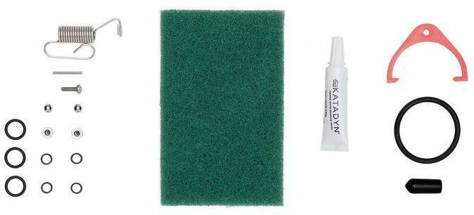 Karbantartó készlet pótalkatrészekkel a zsebszűrőhöz Katadyn Pocket Maintance Kit (Kit 1) 1x o-gyűrű visszacsapó szelephez 2 x golyó 1 x imbusz csavar 4 x tömítés 2 x hengeres csavar 1 x csap 3 x O-gyűrű az emelőszelephez 1 x mérőpohár 1 x tömlőbilincs 1 x szilikon zsiradék