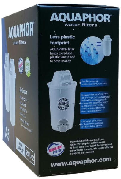 Aquaphor 5 kancsó szűrőbetét megnövelt szűrőtöltettel, 350 literes kapacitással. Kompatibilis a B100-5 kancsó betéttel. 2 db vízszűrőbetét; Aquaphor termék ívóvíz szűréséhez.