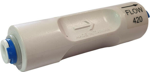 420-as áramlás szabályozó szennyvíz elvezetéshez Fordított ozmózis membránnal ellátott víztisztítók áramlás szabályozója a szennyvíz elvezető csőre. Mindkét végén 1/4'-os gyors csatlakozóval. Ha ezt az alkatrészt kell cserélnie, mindig vegye figyelembe a nyíl jelzését, mely a lefolyó irányába kell mutasson!