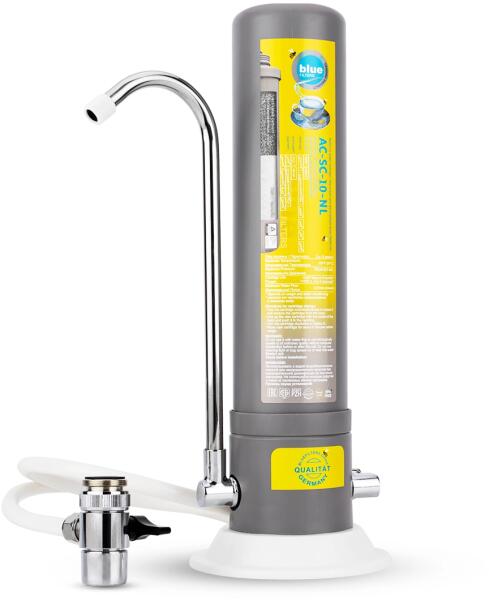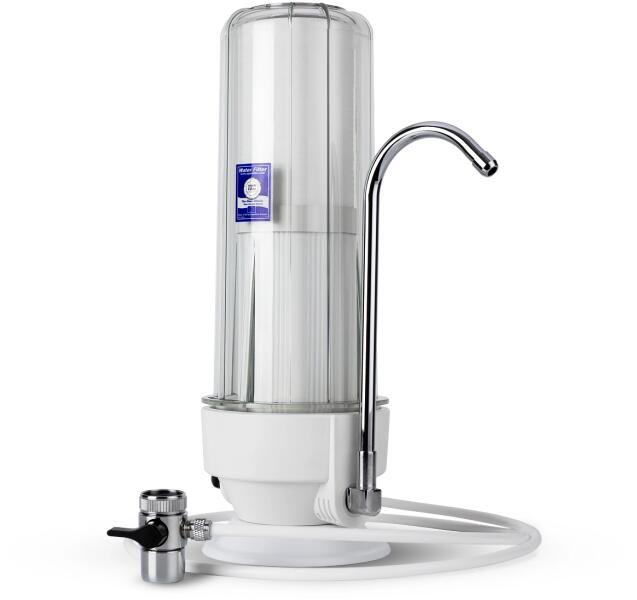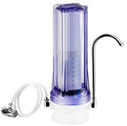 BLUEFILTERS COUNTERTOP I. kombinált szűrőbetéttel rendelkező vízszűrő. Keskeny, úgynevezett ""Slim"" kivitel, így szinte biztos, hogy a legkisebb konyhapulton is elfér! NEWLINE FILTER Német tervezésű, magas minőségű aktívszenes szűrőbetéttel rendelkezik, melyben ""yarn"" száltekercselt mechanika szűrő is helyet kapott. Megköti a vezetékes csapvízben megtalálható klórt