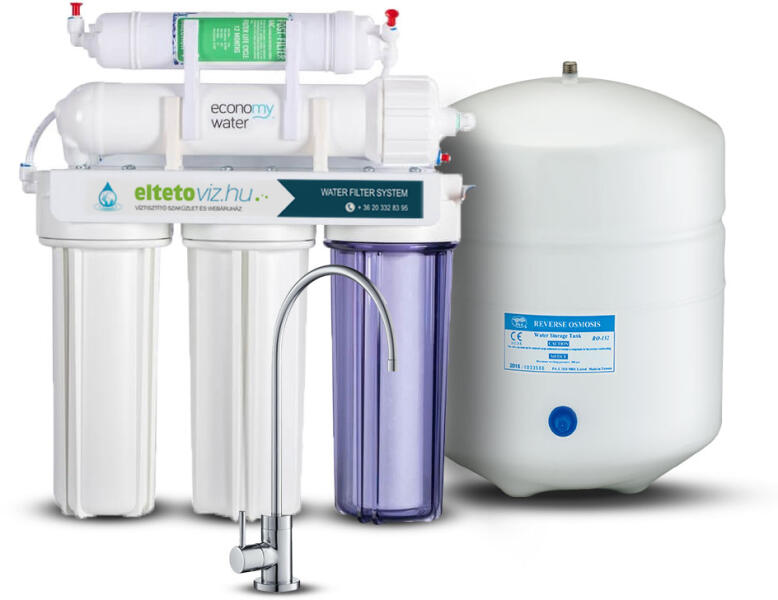 Magyarországon összeszerelt kíváló minőségű, megbízható 5 lépcsős fordított ozmózisos víztisztító Műszaki jellemzők: - 5 lépcsős víztisztítás lépcső: 5 mikronos előszűrő lépcső: aktív szén előszűrő lépcső: 1 mikronos előszűrő lépcső: Ozmózis (RO) membrán 75 GPD lépcső: aktív szén utószűrő Megengedett víznyomás: 3 - 7 bar Maximális kapacitás 7
