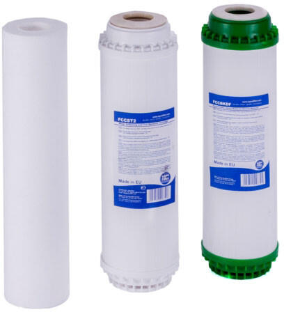 Aquafilter 4 lépcsős UF membrános készülék szűrőcsomagja membrán nélkül A szűrőkészlet 3 db szűrőbetétet tartalmaz. 1. szűrő: 5 mikronos szűrő, amely a nagyobb szennyeződések felfogására alkalmas. 2. szűrő: vastalanító és vízlágyító szűrő, amelynek segítségével a tisztított víz lágy lesz (nem vízkövesedik el a kávéfőző, vízforraló) és a vastartalm