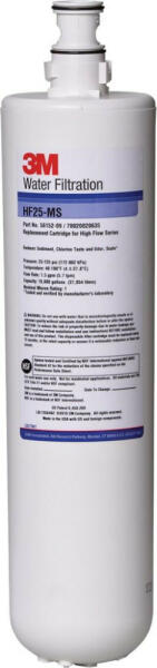 kapacitás 37854 liter | áramlási sebesség 5.7 l/perc | szűrési fokozat 3 μm | maximális vízhőmérséklet 37.8 °C | cserepatron a BREW125-MS rendszerhez | kávéfőzők és automaták számára