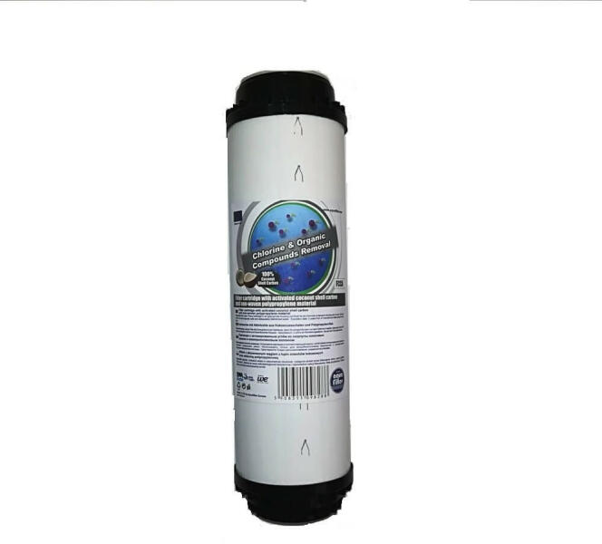 5 mikronos, nagy tisztaságú kókuszdióhéjból előállított préselt (CTO BLOCK) aktívszén szűrőbetét, hálós felépítésben. 5 mikronos, nagy tisztaságú kókuszdióhéjból előállított préselt (CTO BLOCK) aktívszén szűrőbetét, hálós felépítésben. Alkalmazása: Felhasználható víztisztításra minden olyan szűrőházban, amelynek mérete: 10". Lakások, kisebb kapaci