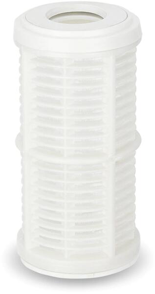 Mosható mechanikai, üledék szűrő 100 mikronos résmérettel. Standard 5"-os szűrőházba helyezhető. A szűrendő folyadékból hatékonyan eltávolítja a résméretétől nagyobb mechanikai, lebegő szennyeződéseket. (rozsda, homok, iszap, egyéb üledék) Telítődés után folyó víz alatt megtisztítható, így újra és újra felhasználható! Anyag: polipropilén (PP) és nylon