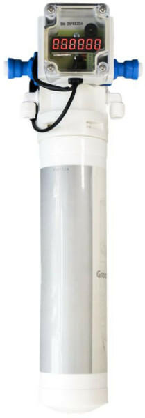 EVIDO GREEN VÍZSZŰRŐ Szűrőházba épített, kompakt ezüstözött szénszűrő IP 65 védettségű (vízálló) digitális átfolyásmérővel. Eltávolítja a vezetékes vízből a kellemetlen szín-, íz és illatanyagokat, kiszűri a klórt, ólmot, vasat, mangánt (miközben a természetes ásványi anyagok megmaradnak). Ezüst töltete gátolja a baktériumok, gombák, vírusok elszaporo