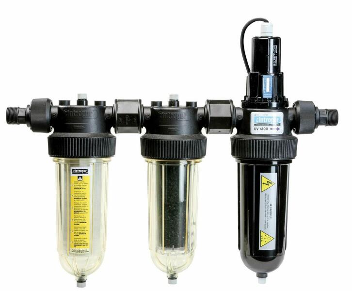 Szűrő rendszer három funkcióval: 25 vízszűrő, aktív szén szűrés és UV sterilizálás 40W UV lámpával. Áramlási sebesség (DEBIT) MAX. 2,6 m3 / óra. Az UV lámpát évente egyszer kell cserélni , és 24 órán keresztül bekapcsolva kell maradni, védeni kell a nedvességtől és az ujjlenyomatoktól. A szemcseszűrő szűrőbetétjét 2 havonta érdemes cserélni. 40W -os UV lám