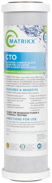 MATRIKX CTO TÖMBÖSÍTETT AKTÍVSZÉN SZŰRŐBETÉT A MATRIKX® márka, amely a szabványok felállításáról híres, egy lépéssel előbbre lépett és továbbfejlesztett műszaki tartalom mellett megújította a termékcsalád minden tagját. Az iparágban elsőként kínál klóramin és PFAS eltávolítást 50%-kal nagyobb klór adszorpció mellett. Ezenkívül magas hatásfokkal eltávol