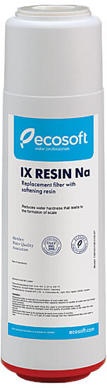 Ecosoft IX Resin Na vízlágyító szűrőbetét A betét magas minőségű ioncserélő gyantát tartalmaz, csökkenti a kezelendő víz keménységét. A szűrés során kicseréli a kálcium és a magnézium kationait nátrium-ionokra. Csere intervallum: 3 - 6 hónap (felhasználási jelleg függvényében) Gyártó: Ecosoft Water Systems GmbH (BWT Group) Made in EU A szűrőbetét szabvány m