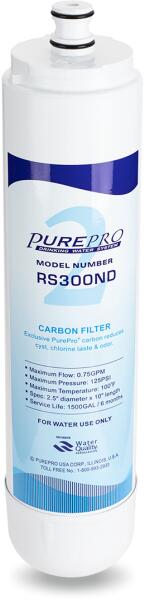 PurePro RS300ND aktívszén szűrőbetét "Royal Quick Change" gyorscsatlakozású fej résszel. Magas minőségű szűrőbetét, mely eltávolítja a klórt, növényvédő szereket, műtrágyaszármazékokat. Az alábbi konyhai berendezések gyári szűrőbetéte: ERS-105 fordított ozmózis rendszerű víztisztító berendezés ERS-105P fordított ozmózis rendszerű víztisztító berendezés