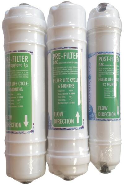Az Economy 360 és 360+ GPD víztisztító harmadik féléves szűrőcsomagja. Ez a csereszűrő készlet az Economy 360GPD készülékhez való. Függetlenül attól, hogy a nagyobb teljesítményű 360+-os készülékkel rendelkezik, vagy sem. A javasolt féléves csere ciklusokat érdemes betartani, hogy a megfelelő működés hosszú távon fenntartható legyen. A szűrőkészlet tartalma, a