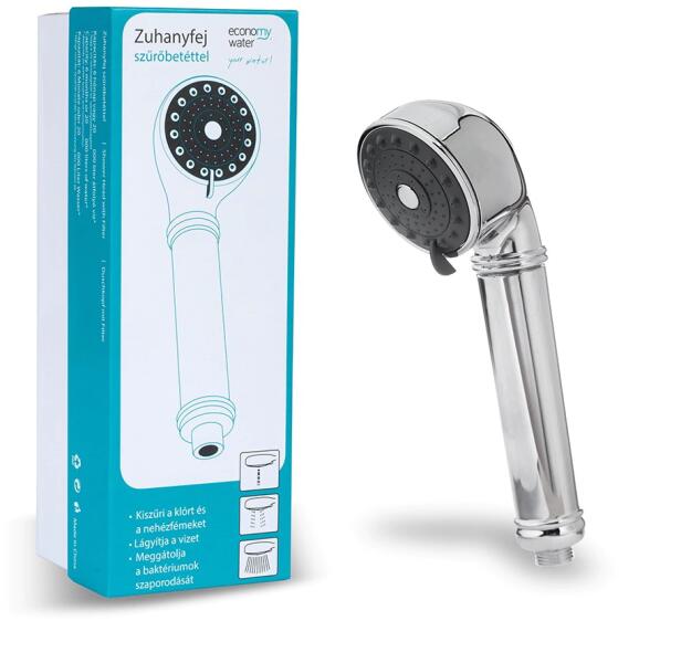 EconomyWater klórszűrős zuhanyfej mely a legtöbb fürdőszobába beleillik! A szűrőbetét a nyelében kapott helyet, így láthatatlan marad! Krómozott kivitel, a vízsugár 3 féle módon állítható. Csatlakozása a magyar szabványnak megfelel, így az összes zuhany gégecsővel kompatibilis. Felszerelése könnyű, csak csavarja le a régi zuhanyrózsát és csavarja fel helyette az E