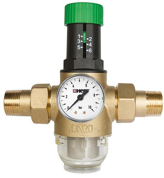 HERZ víznyomáscsökkentő (1) Herz 1" colos nyomáscsökkentő szelep. Kompakt forma, sárgaréz test, átlátszó műanyag sapka. Szűrőkulcs és manométer mellékelve. Hőmérséklet-tartomány 0 °C és 40 °C között, üzemi nyomás 16 bar, beállítási tartomány 0,5-6 bar, rozsdamentes acél szűrőháló 0,3 mm hálószélességgel. Állítható Műanyag kupakkal EPDM tömítés Holla