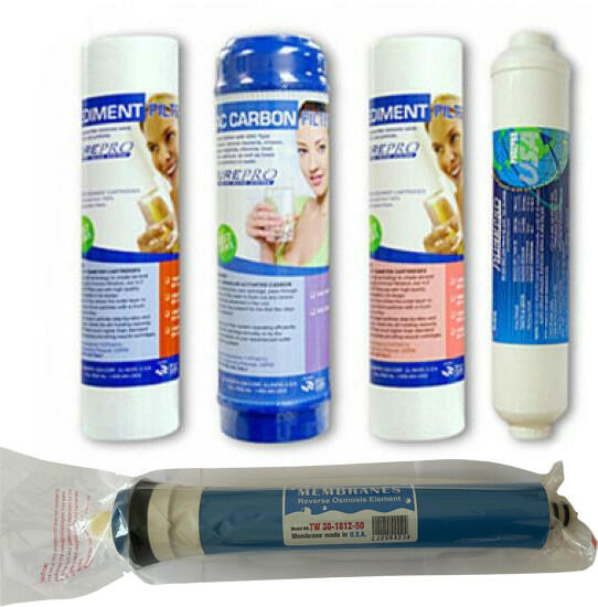 5 darabos szűrőcsomag a negyedik féléves karbantartáshoz. A kosár gomb mellett választhatja ki, hogy melyik szénszűrővel szeretné megvásárolni a csomagot. A felsorolás, a készülékbe érkező víz áramlási irányának megfelelően van feltüntetve. A 3 darabos készlet az alábbi szűrőket tartalmazza: 1. szűrő: PurePro 5 mikronos szűrőbetét 10" polipropilén (PP) 2. szűr