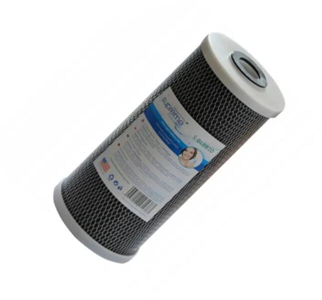 Supreme S-BL tömbösített szerkezetű aktívszén szűrőbetét. Alkalmazása:Felhasználható víztisztításra minden olyan BigBlue szűrőházban, amelynek mérete: 10". A BigBlue 10"-os szűrőbetét alkalmazható központilag történő vízkezelésre. Feladata: Minden íz- és szaghatást okozó anyag eltávolítása a vízből. A klórt és a szerves vegyületeket 98%-ban kiszűri. Kapaci