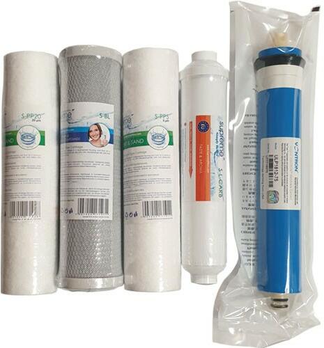 Supreme 5 lépcsős pumpa nélküli, és pumpás készülékek negyedik féléves szűrőcsomagja A szűrőcsomag tartalma, a készülékben áramló víz irányának sorrendjében: 1. 5 Mikronos PP előszűrő henger /Első függőleges szűrőház/ 2. Aktív szénszűrő tömb (CTO) /Középső függőleges szűrőház/ 3. 1 Mikronos PP előszűrő henger /Harmadik függőleges szűrőház/ 4. O