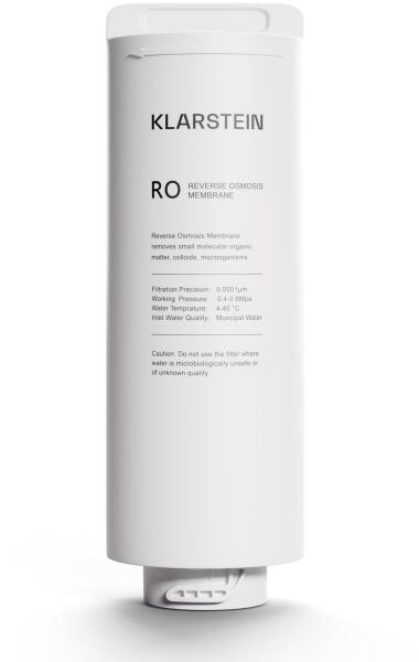 Annak érdekében, hogy tiszta, hideg víz folyjon továbbra is a Klarstein PureFina 400vízszűrő rendszeréből, hogy felfrissítse Önt, a Klarstein PureFina 400 RO szűrőt rendszeresen ki kell cserélni. A szűrők a használat gyakoriságától függően akár 24 hónapig is kitarthatnak, és így fáradhatatlanul tisztítják a vizet. Ehhez a fordított ozmózis fizikai elvét használják