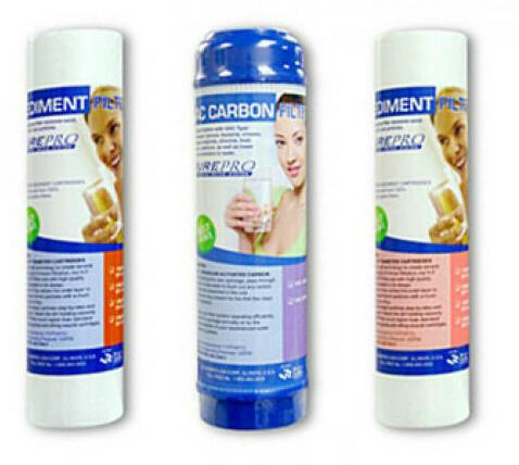 3 darabos szűrőcsomag a harmadik féléves karbantartáshoz A kosár gomb mellett választhatja ki, hogy melyik szénszűrővel szeretné megvásárolni a csomagot. A felsorolás, a készülékbe érkező víz áramlási irányának megfelelően van feltüntetve. A 3 darabos készlet az alábbi szűrőket tartalmazza: 1. szűrő: PurePro 5 mikronos szűrőbetét 10" polipropilén (PP) 2. szűrő