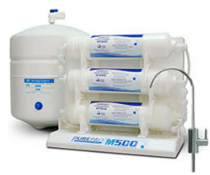 PurePro M500 5 lépcsős ozmózis víztisztító, hagyományos csappal A PurePro M500 víztisztító 5 lépcsős ivóvíztisztító berendezés. A szűrőházakba épített szűrők, kompakt szűrőegységek melyek előnye, hogy a szűrők cseréje a menetes szűrőházaknak köszönhetően könnyedén megoldható. A készülék jellemzője még, hogy a tisztítórész kisebb, mint a hagyományos