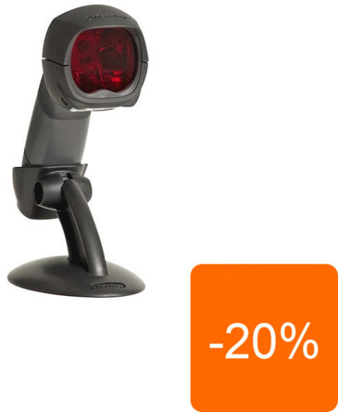 handheld scanner, retail, 1D, omnidirectional, CodeGate function, switchable scan pattern, 1333 scans/sec. , RS-232, incl. : cable (RS-232), power supply unit (EU), stand, colour: black