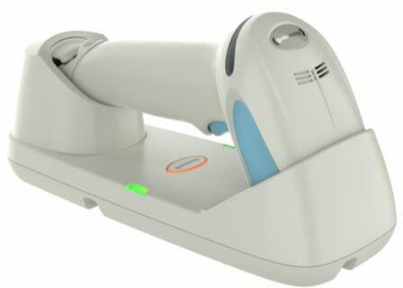 Bluetooth scanner, healthcare, 2D, imager (high density), desinfectable housing, incl. : cable (USB, straight, 3 m, black), charging/transmitter cradle, battery, 2400 mAh, colour: white