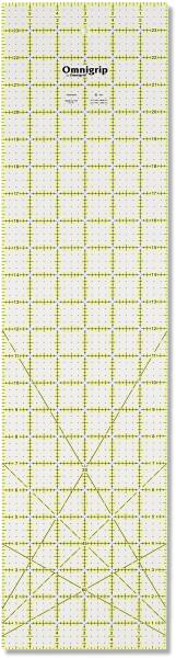 PRYM - Omnigrip csúszásmentes patchwork vonalzó A körkés és vágólap mellett elengedhetetlen kelléke egy foltvarró készletnek. Kiváló minőségü műanyagból készül. Körkés használatára tervezve. A körkés pengélye tökéletesen siklik a vonalzó éle mellett. A használt festék speciális tulajdonsága miatt a vonalzó nem csúszik a textilián. Inch jelölésekkel. 300, 450
