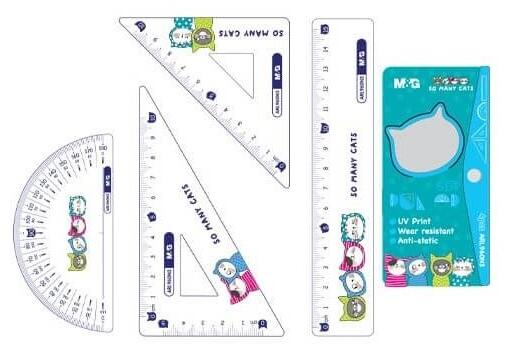 4 darabos kisméretű, műanyag vonalzó készlet So many Cats design-nal. Visszazárható műanyag tasakban, melynek köszönhetően hordozható a szett. Tartalma: 1 db 15 cm-es egyenes vonalzó, 1 db 60o-os háromszög és 1 db 90o-os háromszög vonalzó, valamint 1 db szögmérő. Többféle csomagolásban. Tetszőlegesen küldjük. So Many Cats kolleció további termékei >>