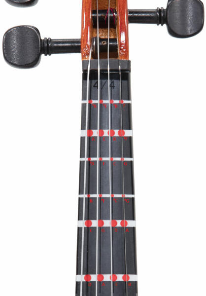 Egy új áttörés, hogy gyorsan megtanulja a skálákat és dalokat játsszon a hegedűn. Egyrészes, öntapadós fólia, nem szükséges hozzá ragasztó. A másodpercek alatt fel- és levehető anélkül, hogy meg kellene lazítani vagy eltávolítani a húrokat. Megmutatja a hangok helyét, amelyek vizuálisan megjelenítik a hegedűn szükséges ujjtartást. Egy új áttörés, hogy gyorsan m