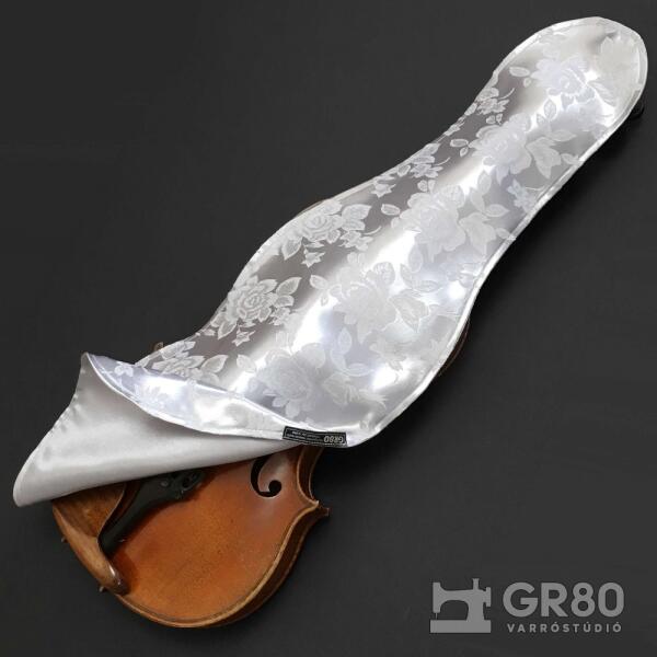 Professzionális, hegedű alakú védőtakaró, felül jacquad brokát (anyagában rózsa mintás), alul pedig 100% szatén selyem. Elegáns és különleges. Extra védelmi réteget nyújt a hegedű és a tok között, ellenáll a párának, pornak, karcolásnak. Professzionális francia varrás, pontos illeszkedés a hegedű formájához és a tokhoz. Lélegző kelme - télen melegen tart, nyár