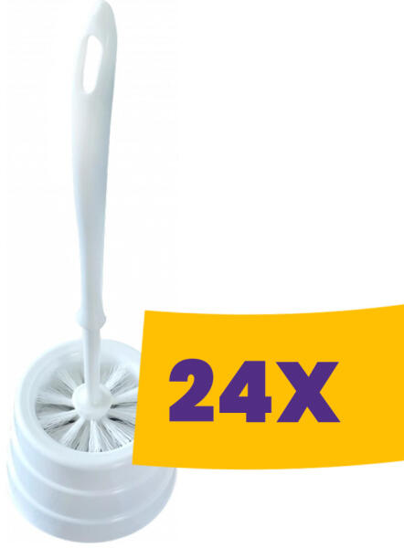 Praktikus és gazdaságos fehér műanyag wc kefe tartállyal. Egyszerű wc kefe hozzávaló tartállyal. Segít a wc tisztán tartásában!