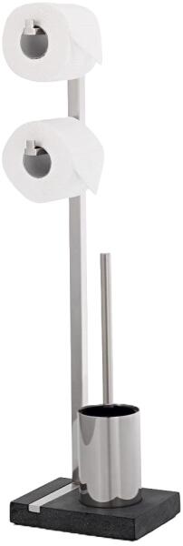 Blomus MENOTO család kiegészítője a MENOTO dupla WC kefetartó és WC-papír tartó, mely nagyon praktikus kiegészítője fürdőszobánknak. A MENOTO dupla WC kefetartó és WC-papír tartó anyagválasztékában egyedi, hiszen a meleg, sötét műkő és rozsdamentes acél hűvős eleganciája kifinomult megjelenést kölcsönöz a WC kefetartónak. A MENOTO dupla WC-papír tartó és WC ke