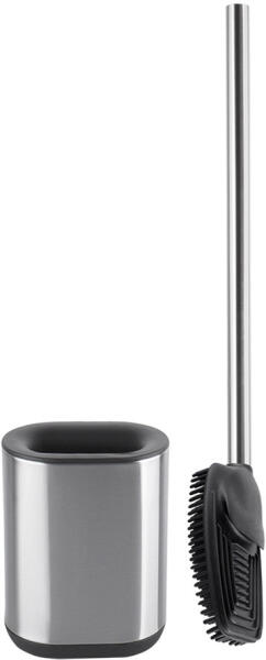 WC kefe rugalmas gumi fejjel WC-kefe speciális lapos szilikonvéggel. A TPR gumi anyaga megkönnyíti a WC tisztítását. A szilikon WC kefe sokkal praktikusabb, mint a hagyományos műanyag kefék. Lehetővé teszi a WC és a kefe jobb higiéniáját. A készlet egy modern, rozsdamentes acélból készült tartályt tartalmaz. Anyag: rozsdamentes acél + TPR Termék méretek: 11,5 cm x 53,5 cm