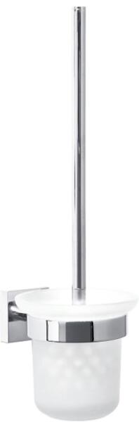 Fali WC-kefe szett, tesaŽ Power. Kit technológiával (átfogó ragasztós rögzítési megoldás)|Szögletes elegancia, magasfényű krómozott fém, homokfúvott üveg|Biztos, öntapadós rögzítés a falra, vízálló, garantáltan rozsdamentes|Használható csempén, fémen, terméskövön, márványon, betonon, fán, üvegen és sokféle műanyagon|Nem használható tapétán, gipszvakolato
