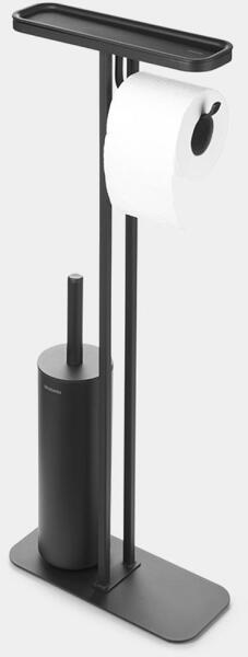 Brabantia MindSet álló WC kefe és papír tartó polcos Minden az egyben - polc, WC-papírtartó, WC-kefe tartó és szilikon WC-kefe egy állványon Egyszerre készen - minden, amire szüksége van a WC-ben, ragasztás vagy fúrás nélkül. Polc telefonnak vagy egyéb tárgyaknak. Minden kéznél van – beépített WC-papírtartó. Higiénikus - szilikon kefe, nem tartja meg a vizet vagy a ba