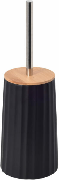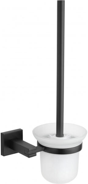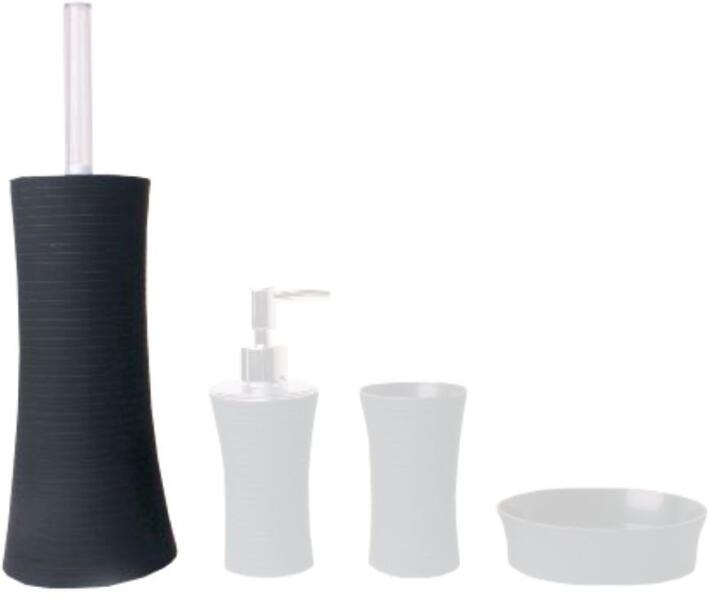 Gom WC kefe fekete műanyag tartályban a Gom kollekcióból Az állvánnyal ellátott WC-kefe a luxus és a tisztaság érzését kelti a belső térben. A WC kefe tartály fekete színű ABS anyagból készült. Ez az anyag kellemes tapintású, csúszásgátló tulajdonságokkal rendelkezik, és garantálja a termék hosszú élettartamát. A fürdőszobai kiegészítők díszítik a fürdőszo