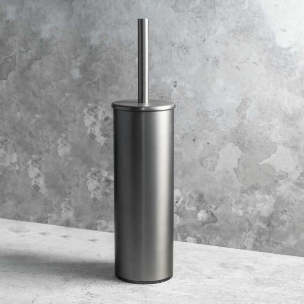 Praktikus loft stílusú WC-kefe. A fedéllel és a fogantyúval ellátott tartály kiváló minőségű, fekete festett acélból készül. A kefetartó belsejében van egy kisebb eltávolítható csepegtető tálca, amely szárazon és tisztán tartja a kefetartót. Teljes magasság: 40 cm Konténer magasság: 27 cm