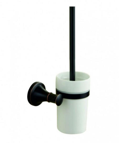 F ali wc kefe tartó fekete porcelán edény Falra rögzített WC kefe tartó, fekete színű kerámia pohárral. A kefe csésze kerámiából készült, magassága 248 mm. A kefe magassága (az üveggel együtt) 40 cm magas és 15 cm mély. Anyaga: rozsdamentes acél;cink-króm ötvözet hordozóKivitel: Matt fekete vintage betétekkelFelhasználási terület: szaniter helyiségek. Könnyen tiszt