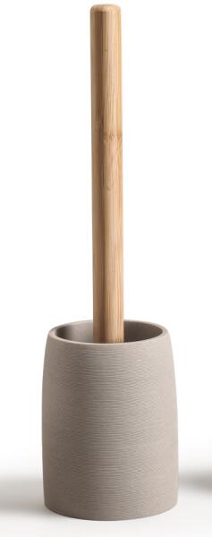 Erga Riko, álló WC kefe, bézs-barna, ERG-08578 A RIKO kollekció egy 4 részes polirezinből készült készlet bambusz elemekkel, elegáns bézs színben. Egyszerűségével és dekoratív vízszintes csíkjaival tűnik ki, amelyek tökéletesen harmonizálnak a természetes anyaggal. Az egyedi minimalista felület felkelti az esztéták figyelmét, a kézzel faragott részleteket idéző